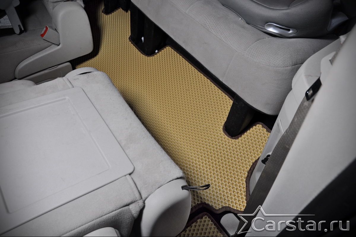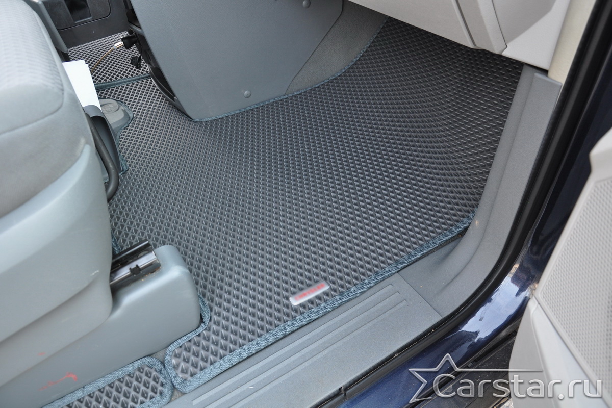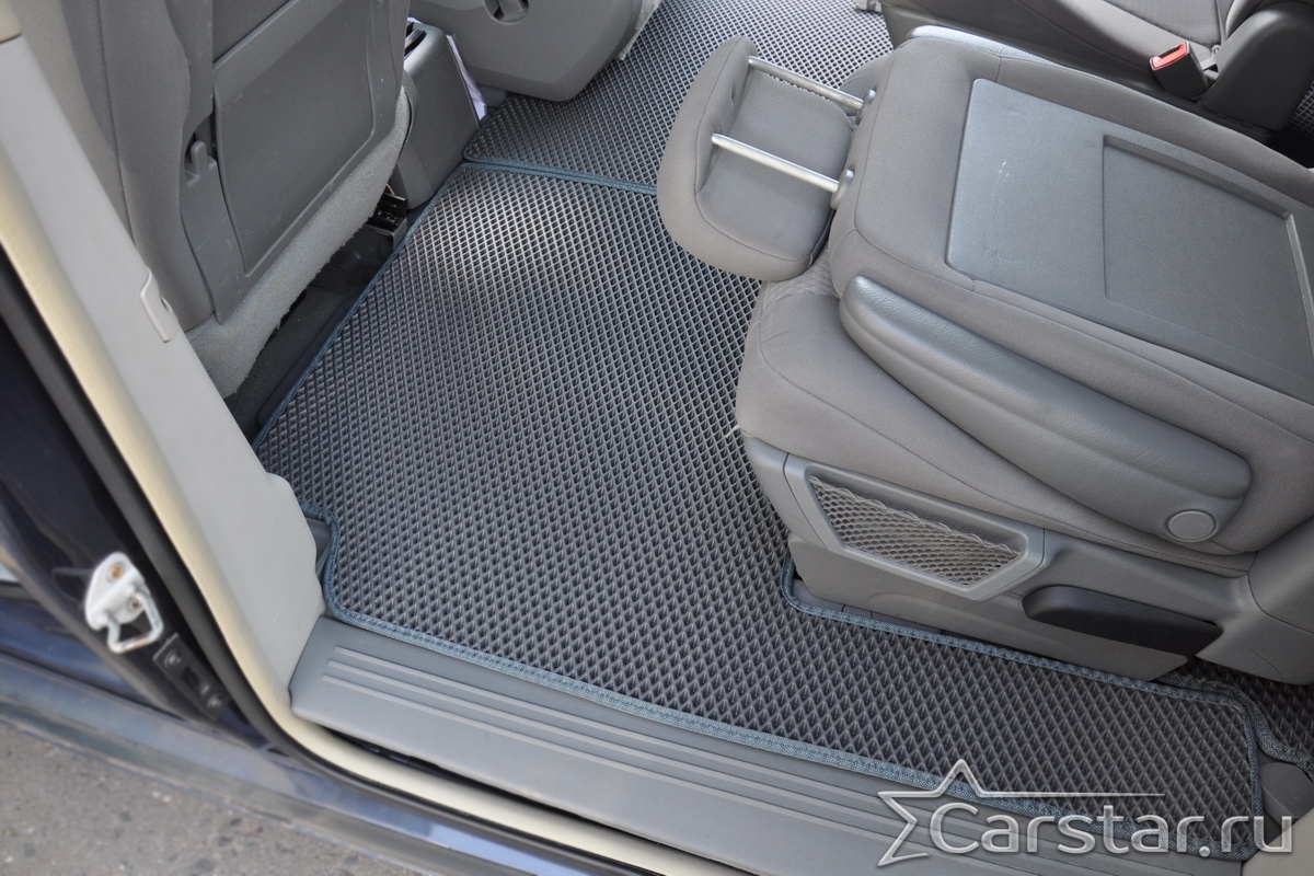 Автомобильные коврики EVA Dodge Grand Caravan V (2007-2020) 2 ряд: кресла 2+1 без прохода – это долговечные, удобные и универсальные аксессуары, которые помогут надежно защитить салон и багажник вашего авто от пыли, грязи и влаги в любое время года.