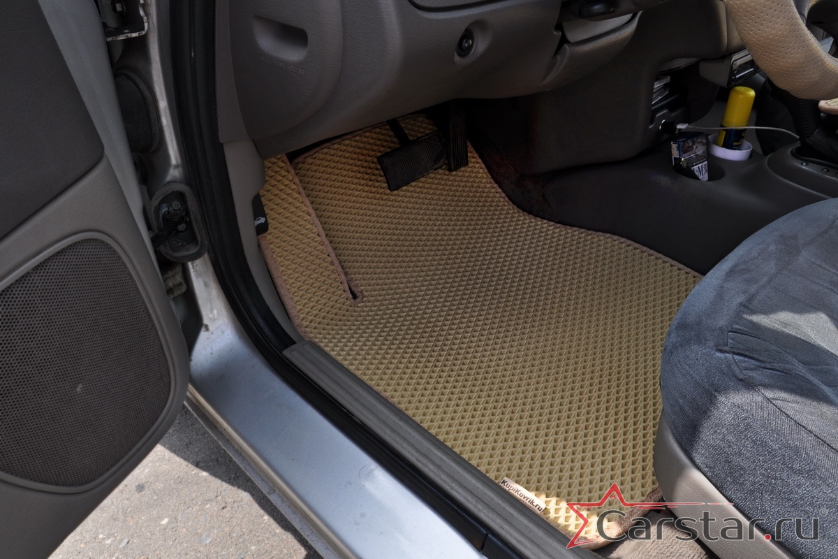 Толщина ковриков EVA составляет 10-12 мм. Глубина ячеек 7-8 мм. Такая толщина ковриков позволяет им служить довольно долго, не протираясь до 3 лет. А благодаря такой глубине ячеек коврик EVA площадью 1 кв.м. способен захватить около 3,5 л жидкости, сохраняя в чистоте вашу обувь и обивку салона.