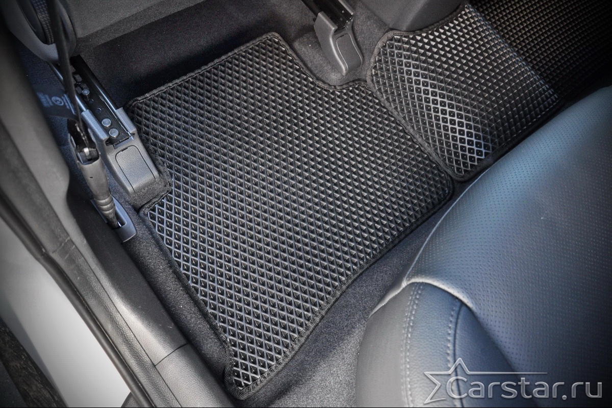 Автомобильные коврики EVA прекрасно подходят для всех существующих марок и моделей авто, здесь вы сможете заказать оптимальный аксессуар любого возможного цвета. По размерам они больше, чем стандартные резиновые коврики, поэтому покрывают максимальную площадь пола в салоне. А двойная система креплений (клипсы и липучки) позволяет надежно зафиксировать коврики в нужном месте.