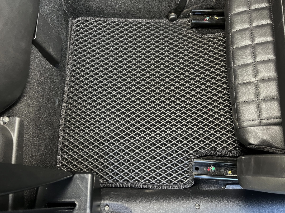 Толщина ковриков EVA составляет 10-12 мм. Глубина ячеек 7-8 мм. Такая толщина ковриков позволяет им служить довольно долго, не протираясь до 3 лет. А благодаря такой глубине ячеек коврик EVA площадью 1 кв.м. способен захватить около 3,5 л жидкости, сохраняя в чистоте вашу обувь и обивку салона.