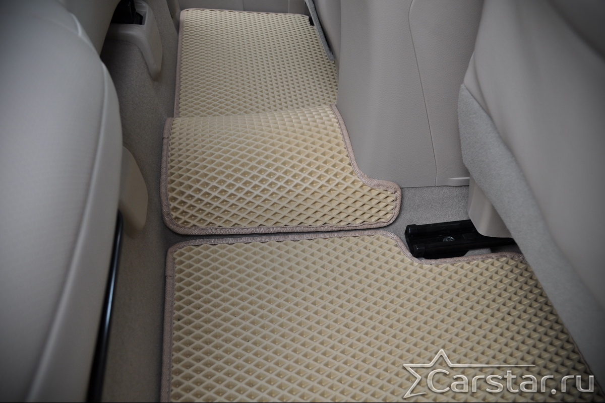 Толщина ковриков EVA составляет 10-12 мм. Глубина ячеек 7-8 мм. Такая толщина ковриков позволяет им служить довольно долго, не протираясь до 3 лет. А благодаря такой глубине ячеек коврик EVA площадью 1 кв.м. способен захватить около 3,5 л жидкости, сохраняя в чистоте вашу обувь и обивку салона.