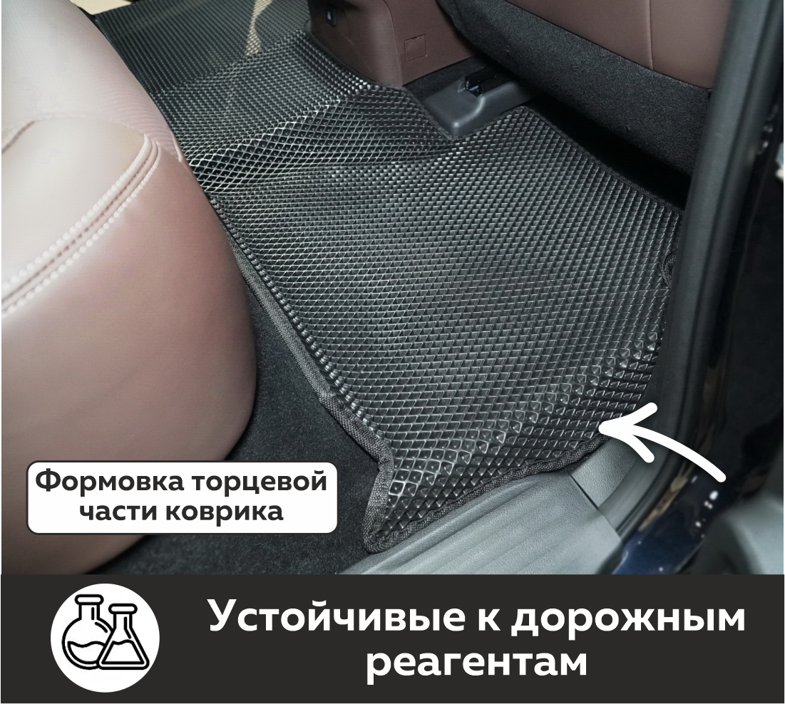 Автоковрики EVA производятся из инновационного экологически чистого материала, обладающего высочайшей износостойкостью, устойчивостью к экстремальным температурам (от +40 С до -40 С) и агрессивным химреагентам. Они в 4 раза легче обычных резиновых аналогов, а чрезвычайно плотная структура обеспечивает им безупречную гидро- и шумоизоляцию!
