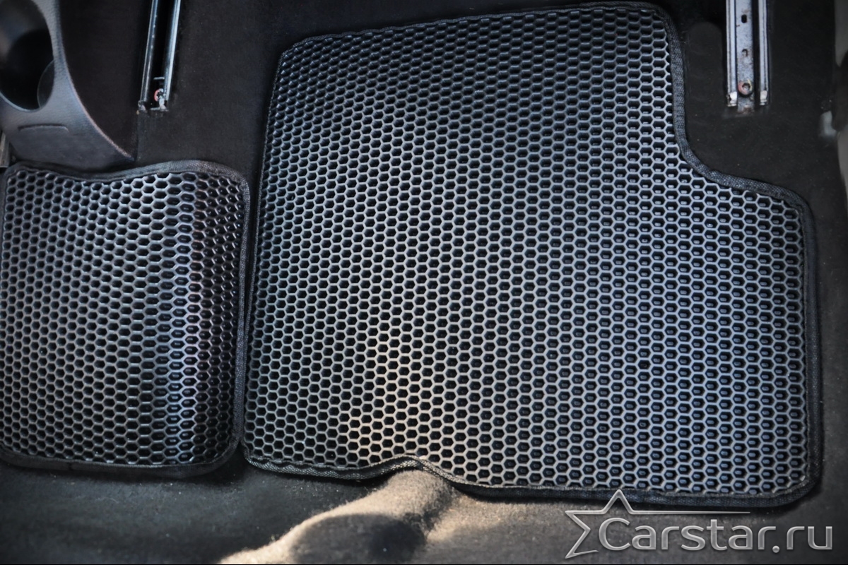 Толщина ковриков EVA составляет 10-12 мм. Глубина ячеек 7-8 мм. Такая толщина ковриков позволяет им служить довольно долго, не протираясь до 3 лет. А благодаря такой глубине ячеек коврик EVA площадью 1 кв.м. способен захватить около 3,5 л жидкости, сохраняя в чистоте вашу обувь и обивку салона.