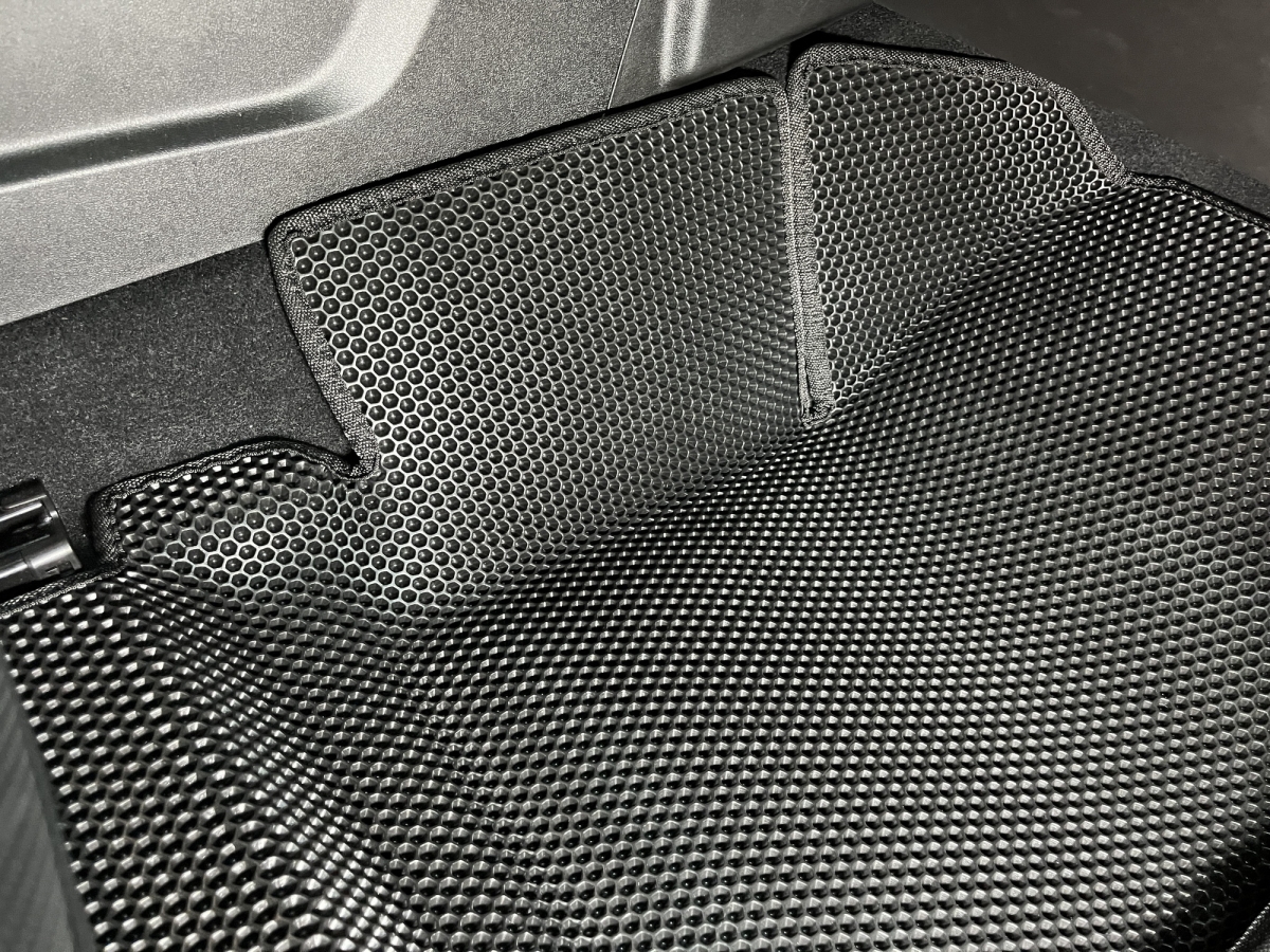 Толщина ковриков EVA составляет 10-12 мм. Глубина ячеек 7-8 мм. Такая толщина ковриков позволяет им служить довольно долго, не протираясь до 3 лет. А благодаря такой глубине ячеек коврик EVA площадью 1 кв.м. способен захватить около 3,5 л жидкости, сохраняя в чистоте вашу обувь и обивку салона.