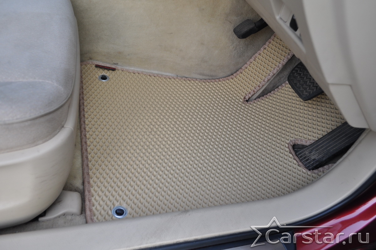 Толщина ковриков EVA составляет 10-12 мм. Глубина ячеек 7-8 мм. Такая толщина ковриков позволяет им служить довольно долго, не протираясь до 3 лет. А благодаря такой глубине ячеек коврик EVA площадью 1 кв.м. способен захватить около 3,5 л жидкости, сохраняя в чистоте вашу обувь и обивку салона.