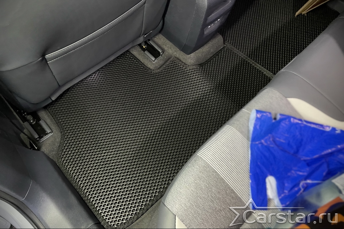 Толщина ковриков EVA составляет 10-12 мм. Глубина ячеек 7-8 мм. Такая толщина ковриков позволяет им служить довольно долго, не протираясь до 3 лет. А благодаря такой глубине ячеек коврик EVA площадью 1 кв.м. способен захватить около 3,5 л жидкости, сохраняя в чистоте вашу обувь и обивку салона.