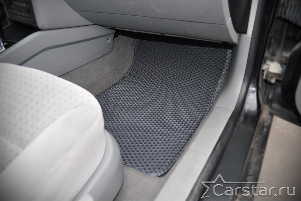 Толщина ковриков EVA составляет 10-12 мм. Глубина ячеек 7-8 мм. Такая толщина ковриков позволяет им служить довольно долго, не протираясь до 3 лет. А благодаря такой глубине ячеек коврик EVA площадью 1 кв.м. способен захватить около 3,5 л жидкости, сохраняя в чистоте вашу обувь и обивку салона.