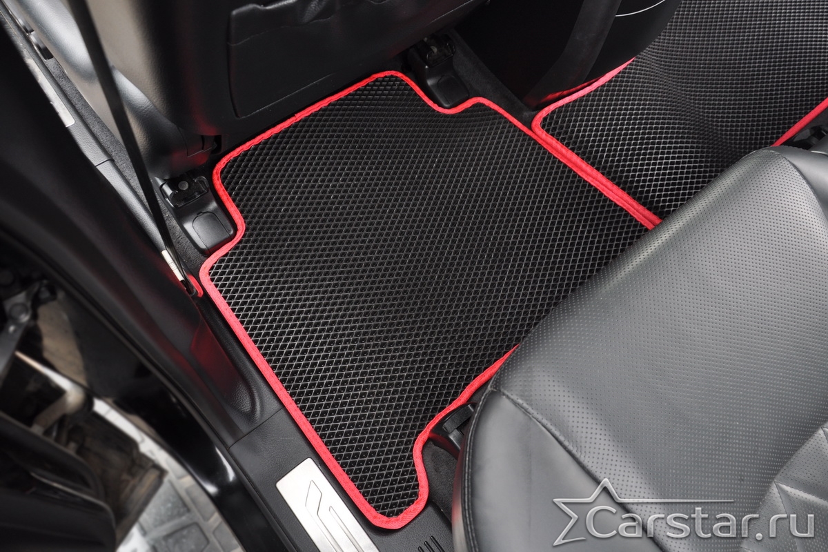 Текстильные коврики надёжно крепятся с помощью оригинальных систем фиксации. Обратная сторона имеет противоскользящее покрытие, что обеспечивает защиту от смещений и безопасность. Максимальное удобство достигается точными лекалами.