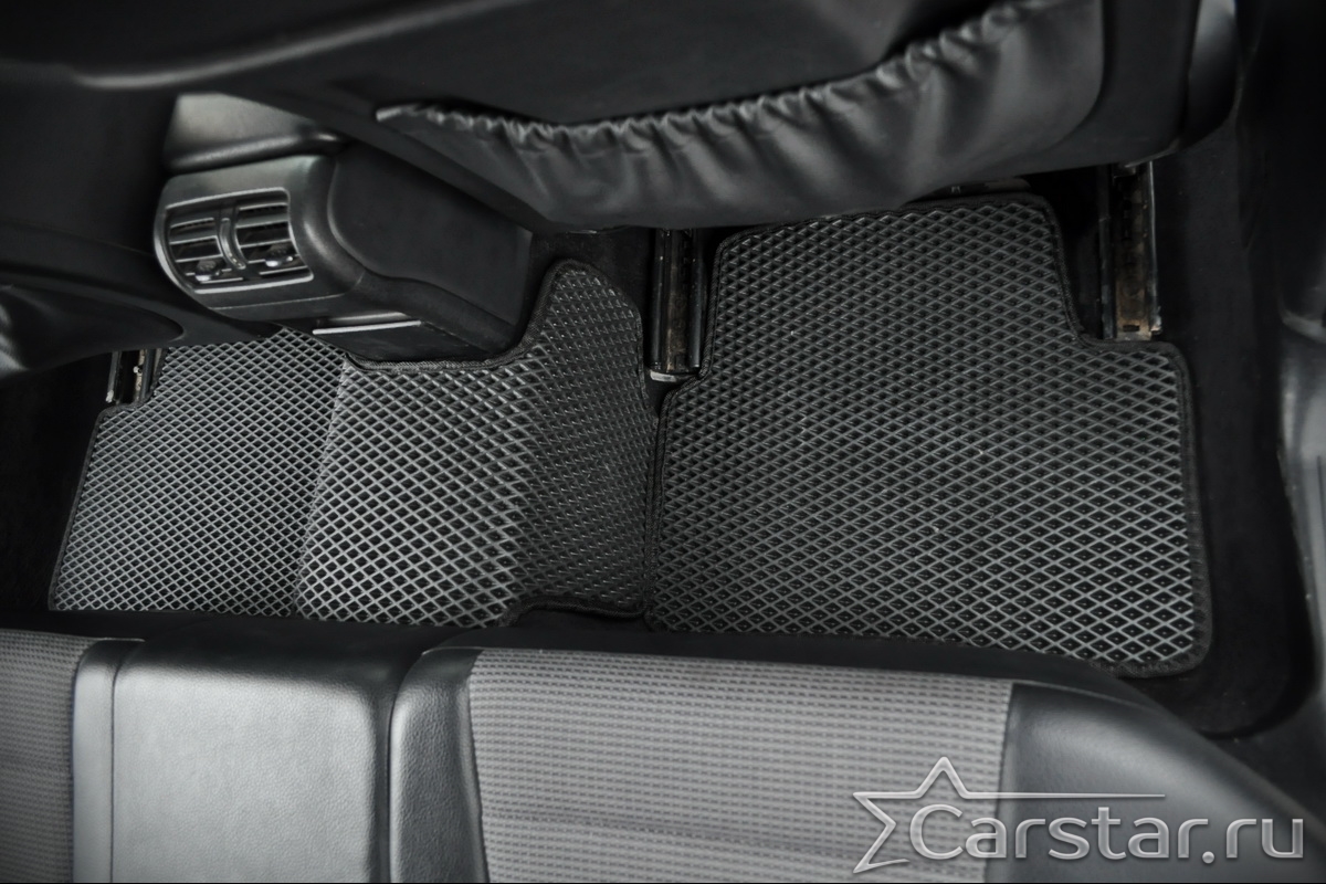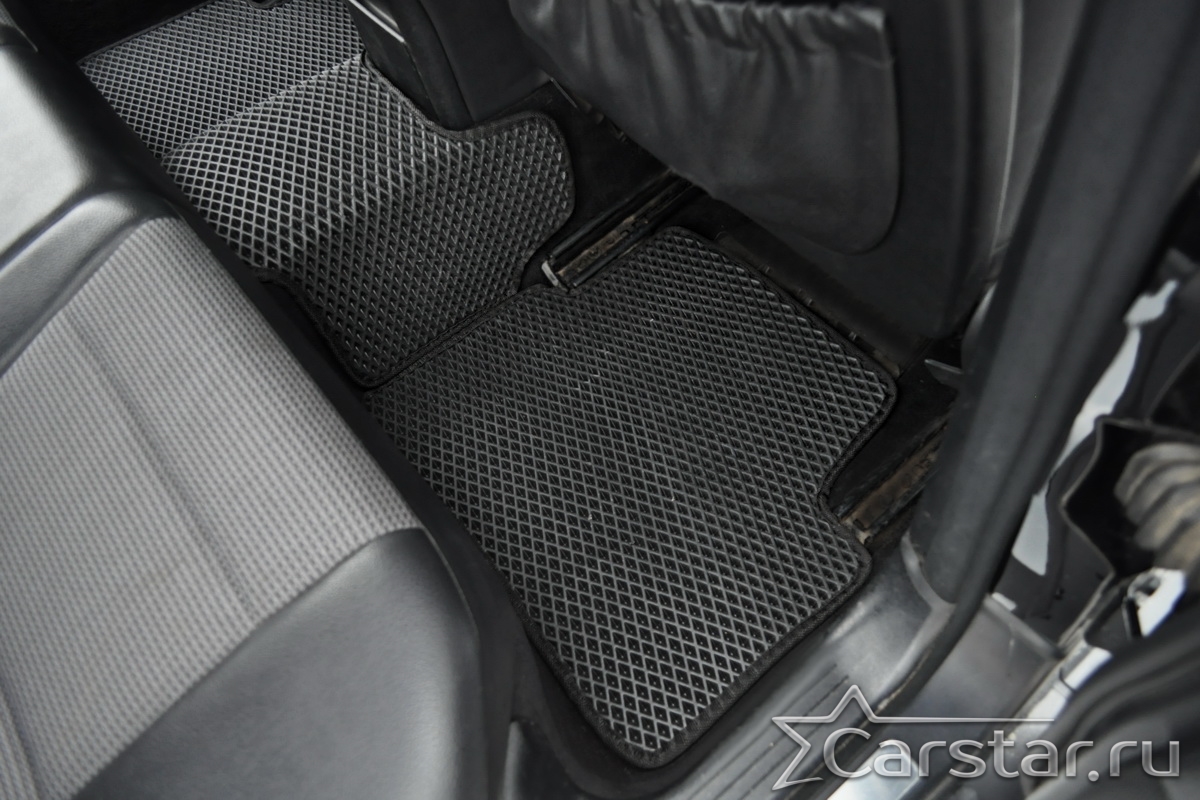 Текстильные коврики надёжно крепятся с помощью оригинальных систем фиксации. Обратная сторона имеет противоскользящее покрытие, что обеспечивает защиту от смещений и безопасность. Максимальное удобство достигается точными лекалами.