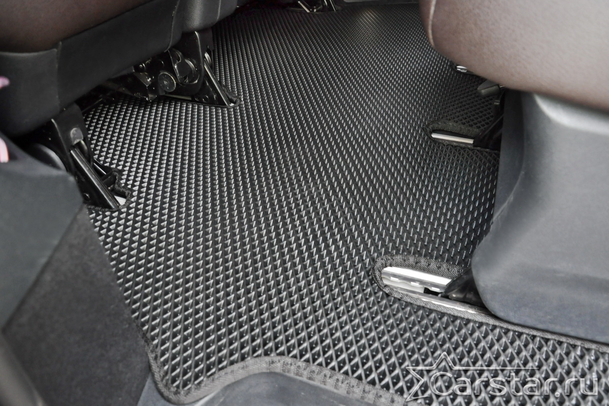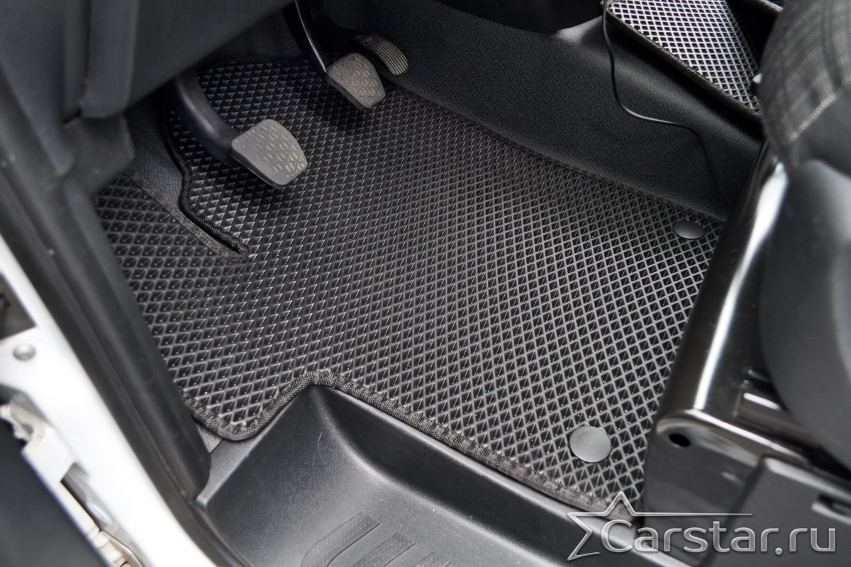 Текстильные коврики надёжно крепятся с помощью оригинальных систем фиксации. Обратная сторона имеет противоскользящее покрытие, что обеспечивает защиту от смещений и безопасность. Максимальное удобство достигается точными лекалами.